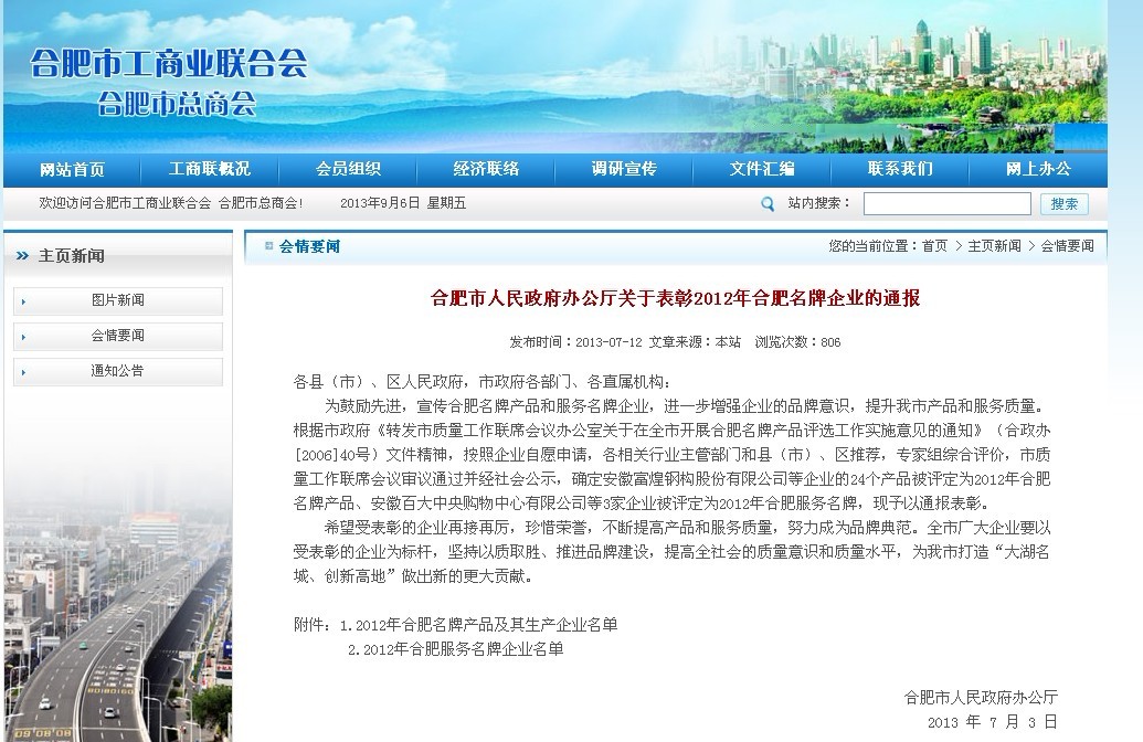 以下為《合肥市人民政府辦公廳關(guān)于表彰2012年合肥名牌企業(yè)的通報》(合政辦秘〔2013〕60號)具體內(nèi)容(摘自工商聯(lián)合會網(wǎng)站)