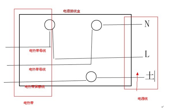 2、2電熱帶一定要接地,可將電熱帶屏蔽網(wǎng)與電源接線(xiàn)盒連接,如下圖:
