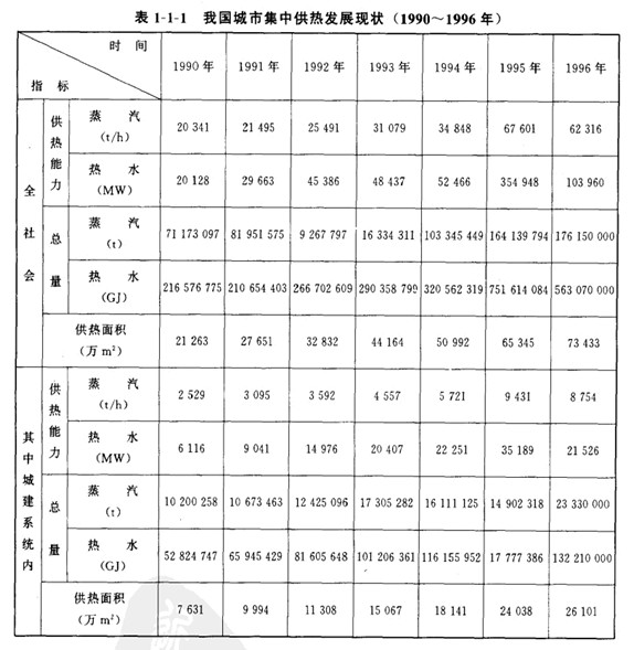 我國城市集中供熱(僅指有集中熱源.通過管通愉送熱煤的傳熱系統(tǒng))發(fā)展很快,詳見表1-1-1。