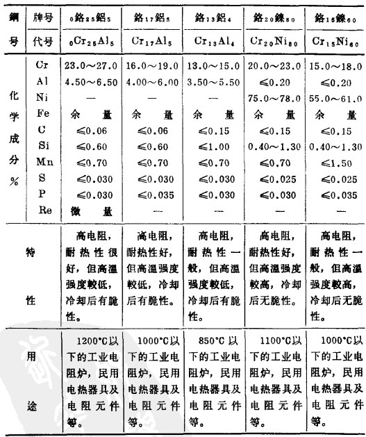 鐵路鋁和鉻鎳電熱合金的化學(xué)成分、特性和主要用途見表。
