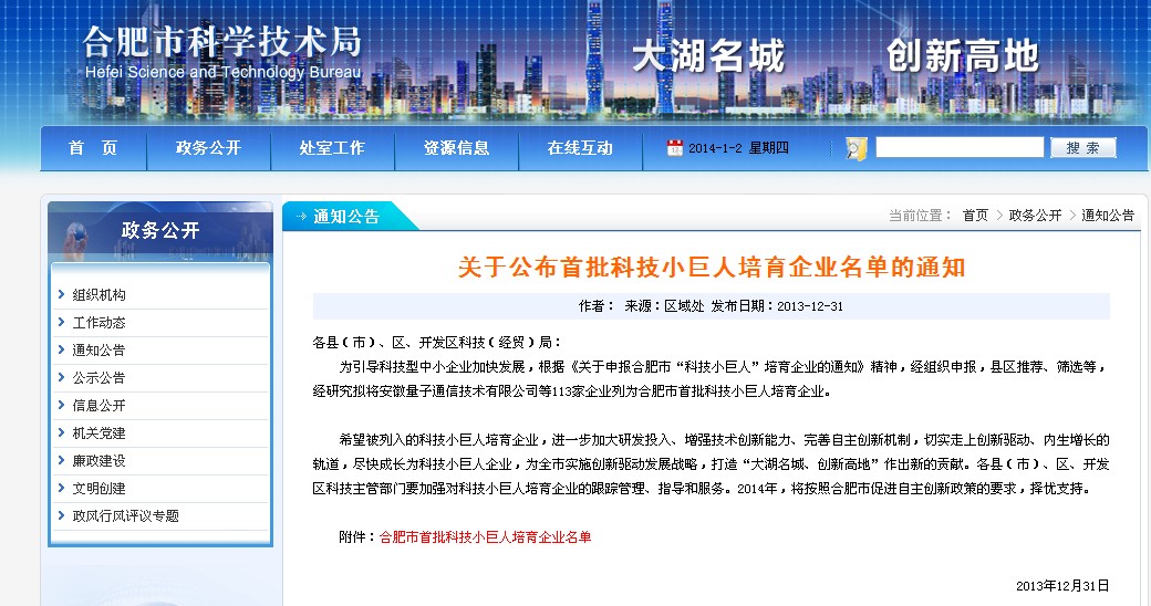 科技小巨人培育企業(yè)是針對(duì)有一定生產(chǎn)規(guī)模與研發(fā)能力,并且取得一定量的科研成果的企業(yè)。企業(yè)入選資格需經(jīng)過(guò)經(jīng)組織申報(bào),縣區(qū)推薦、篩選等環(huán)節(jié)。安徽環(huán)瑞憑借多年電伴熱帶、發(fā)熱電纜生產(chǎn)技術(shù)研發(fā)獲得了市政府的重視,入選成功。以下為合肥科技局網(wǎng)通知公司內(nèi)容: