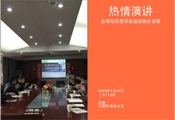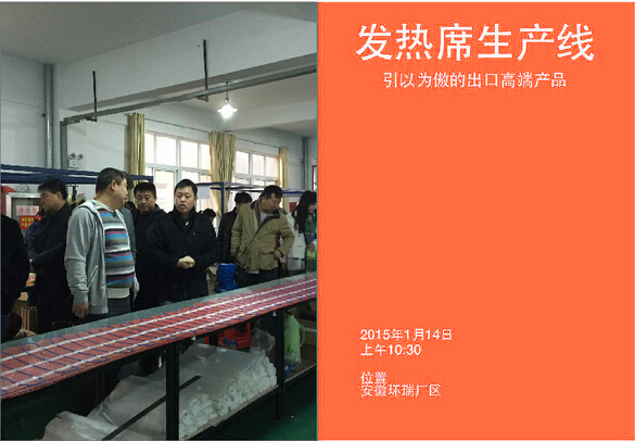 2015年1月14日新年伊始,環(huán)瑞迎來了新疆烏蘇市相關(guān)領(lǐng)導(dǎo)蒞臨考察,烏蘇市相關(guān)領(lǐng)導(dǎo)在環(huán)瑞董事長(zhǎng)計(jì)成志陪同下參觀了環(huán)瑞電伴熱帶、發(fā)熱地席和環(huán)瑞現(xiàn)代化展廳,并在環(huán)瑞會(huì)議時(shí)聽取環(huán)瑞員工對(duì)環(huán)瑞未來發(fā)展的相關(guān)介紹。