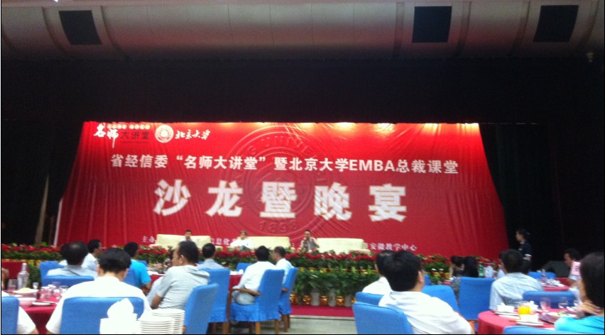 由省經(jīng)信委、北京大學(xué)邀請名師大講堂知名講師,協(xié)作舉辦的EMBA總裁課程,眾多企業(yè)的管理層人員齊聚一堂交流企業(yè)管理經(jīng)驗。此次授課為期2天,并與今日落下帷幕。晚宴上,省信委領(lǐng)導(dǎo)出席主持,話語中透露著對各個行業(yè)管理人員的期許,正是因為有你們的正確的領(lǐng)導(dǎo),才能延續(xù)企業(yè)的活力,才能振興國民經(jīng)濟。晚宴上處處洋溢著積極上進(jìn)的熱情氛圍。