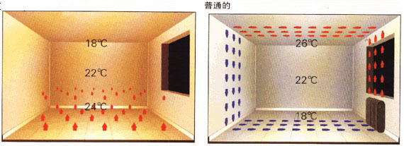 ◆熱量從下向上輻射,自下而上形成梯度溫差,人體感覺十分舒適,非常符合“頭要涼腳要熱”的中醫(yī)人體健康學根本。