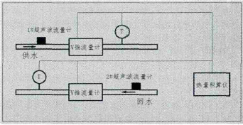 日前我處有一供暖工藝管段,采用的是V錐流量計測量供回水流量,在運行期間發現日常流量在1000T/h的時候,供回水的瞬時偏差能達到200~300T/h,這就意味著日失水量達到7200T,這是一個運行單位所不能承受的,供需雙方在表具的準確度上存在較大分歧,但是由于在運行期,不可能將流量計拆除進行校驗,為了解決這一問題,我們設計出雙超聲波流量計在線比對的方案,通過實際操作和數據采集分析,為雙方的后續處理提供了科學的依據。