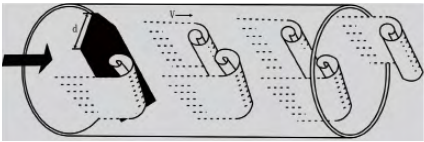 當被測流體流經漩渦發生體時,在發生體的后部兩側交替產生兩列漩渦,形成“渦街”如圖2所示。該漩渦的發生頻率與流體的速度成正比,在一定的條件下符合下式: